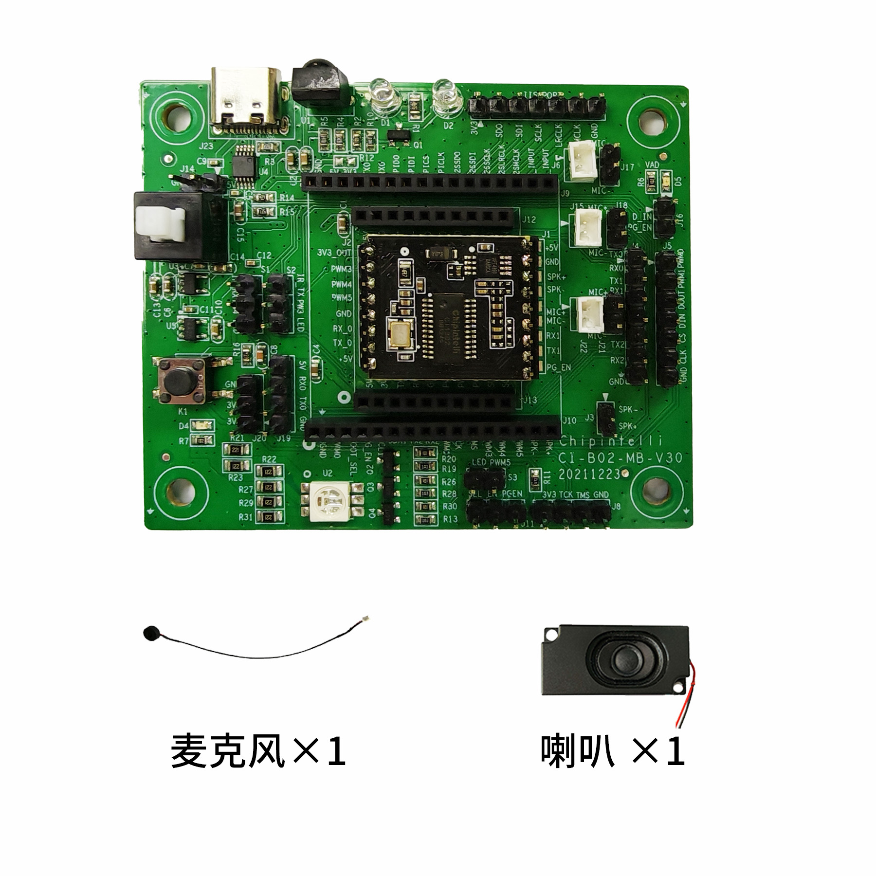 CI1303开发板套件可用于CI1303芯片的开发调试。通过该底板,可实现所配套语音模块的外接和扩展应用,以及用户开发固件的设计验证。CI1303 与CI1301、CI1302 是pin2pin的管脚定义,使用该开发套件开发的固件,也可以在CI1301、CI1302上运行【打包时选择CI1301,CI1302】。【产品清单】