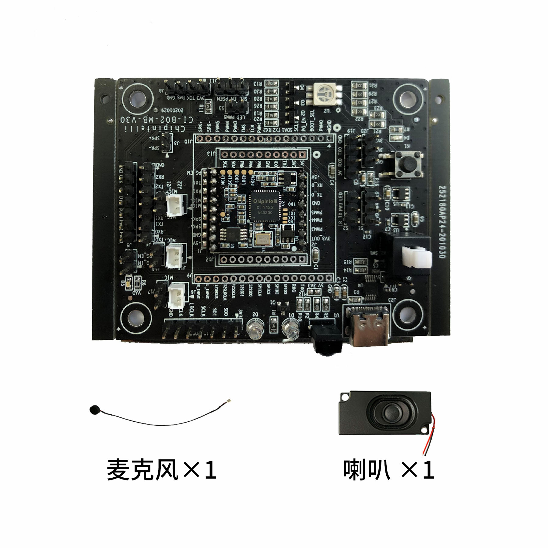 【产品说明】该开发板的模块为单面贴装,主要IC包括语音识别芯片CI1122、电源、功放等、声音从单麦克风输入,经语音IC识别后送给功放驱动喇叭播放声音。该模块有8个GPIO口,扩展性良好,通过 2 路 UART,可以扩展 wifi、bt、2.4G、433、zigbee 等通讯 接口实现联网需求,通过 3 路 PWM 可以直接控制灯光,红外等外设。