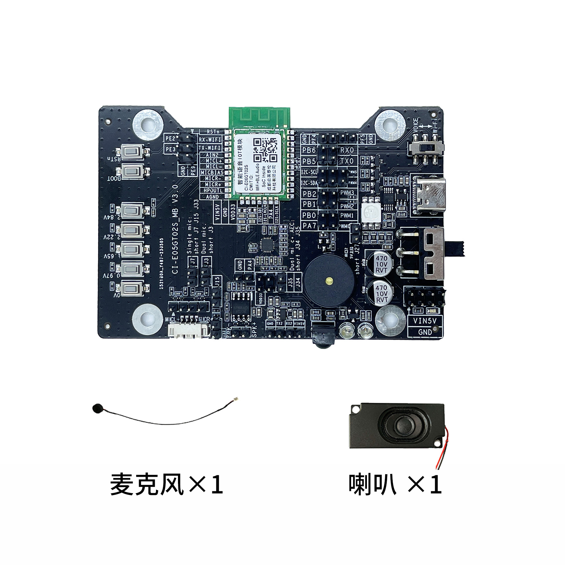 集成1路麦克风、1路喇叭