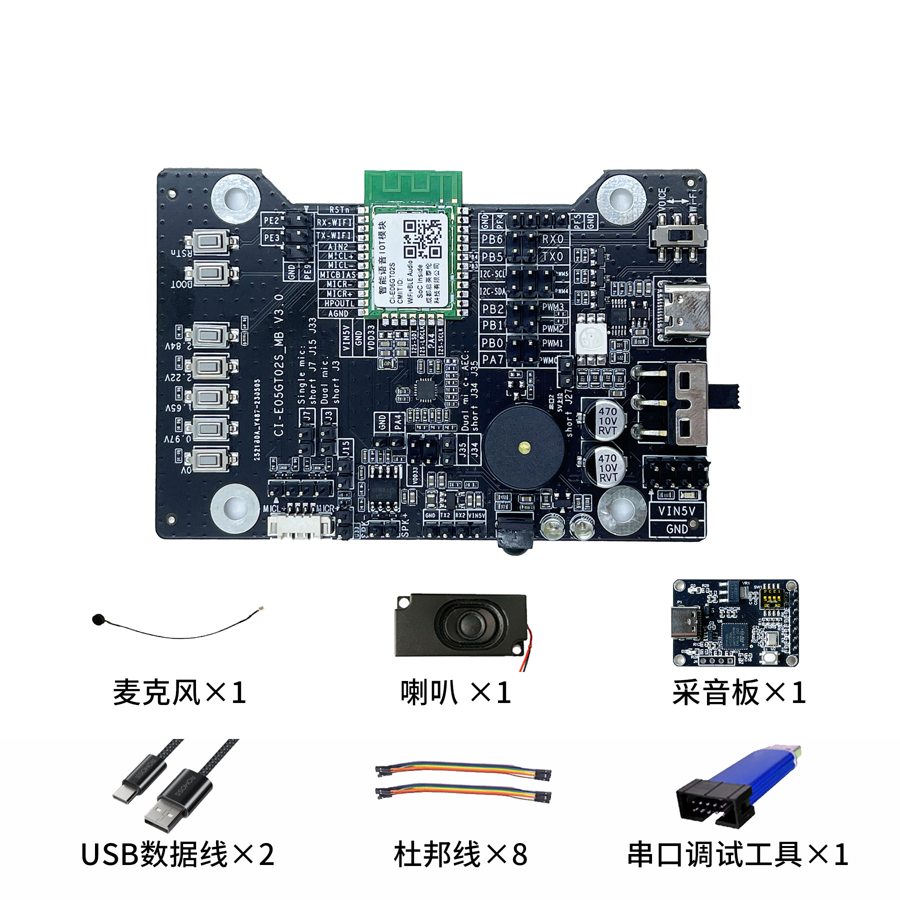 集成2颗红外发射管以及1颗红外接收管,可开发语音红外遥控设备以及红外学习功能
